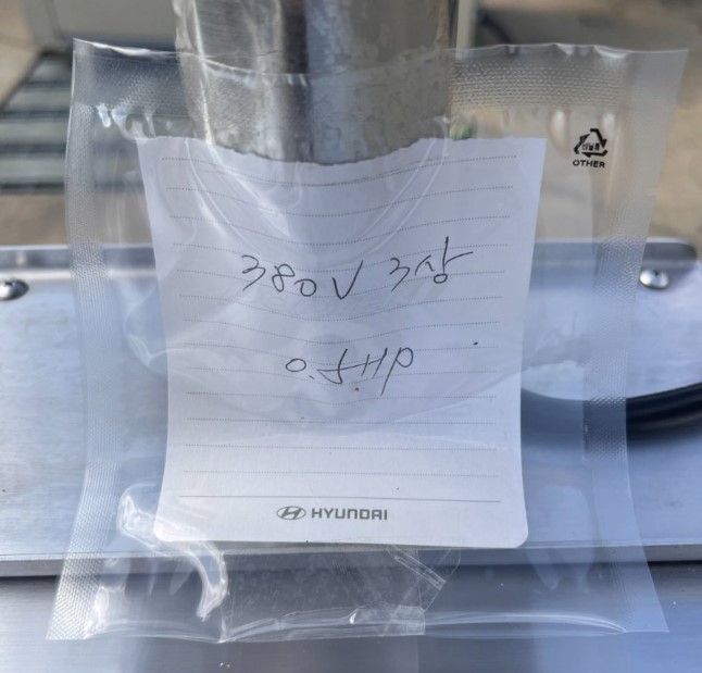 전원 380V 3상 규격이고, 모터 0.5마력입니다.